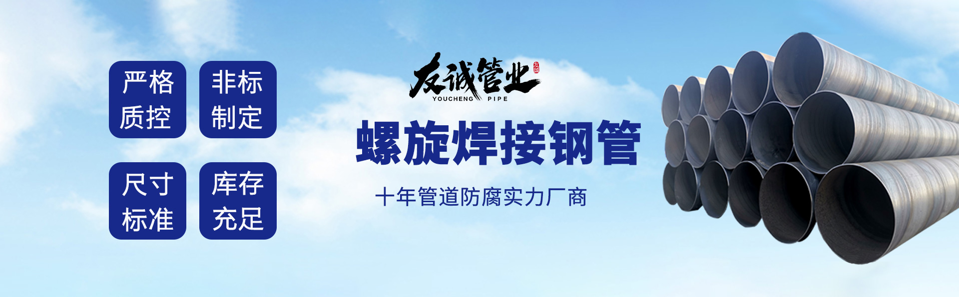 滄州友誠(chéng)管業(yè)有限公司是一家專業(yè)從事生產(chǎn)防腐涂塑管道及管件于一體的大型企業(yè)。公司注冊(cè)資金8600萬元,位于中國(guó)管道生產(chǎn)基地—河北鹽山縣,近靠京滬高速、榮烏高速、黃石高速30公里,高鐵滄州西站40公里,天津國(guó)際機(jī)場(chǎng)、濟(jì)南遙墻機(jī)場(chǎng)150公里,為客戶來訪及業(yè)務(wù)發(fā)展提供了便利的交通條件。 鋼管系列:螺旋鋼管、無縫鋼管、ERW直縫焊管、JCOE埋弧焊直縫鋼管、熱鍍鋅鋼管。 涂塑系列:內(nèi)外涂塑鋼管、涂塑復(fù)合鋼…… 了解更多